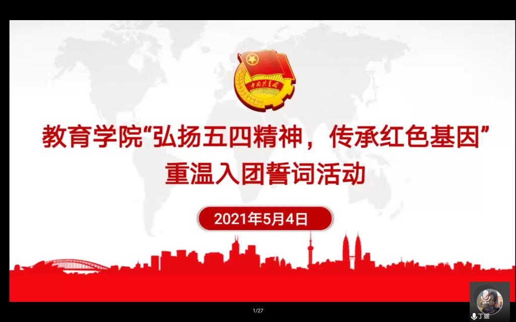 为庆祝“五四”运动102周年,激发团员青年的爱国热情和斗志,5月4日上午,k1体育于腾讯会议App开展“弘扬五四精神,传承红色基因”重温入团誓词活动。院团委书记丁媛、各班团支部书记、团员代表共70余人参加。