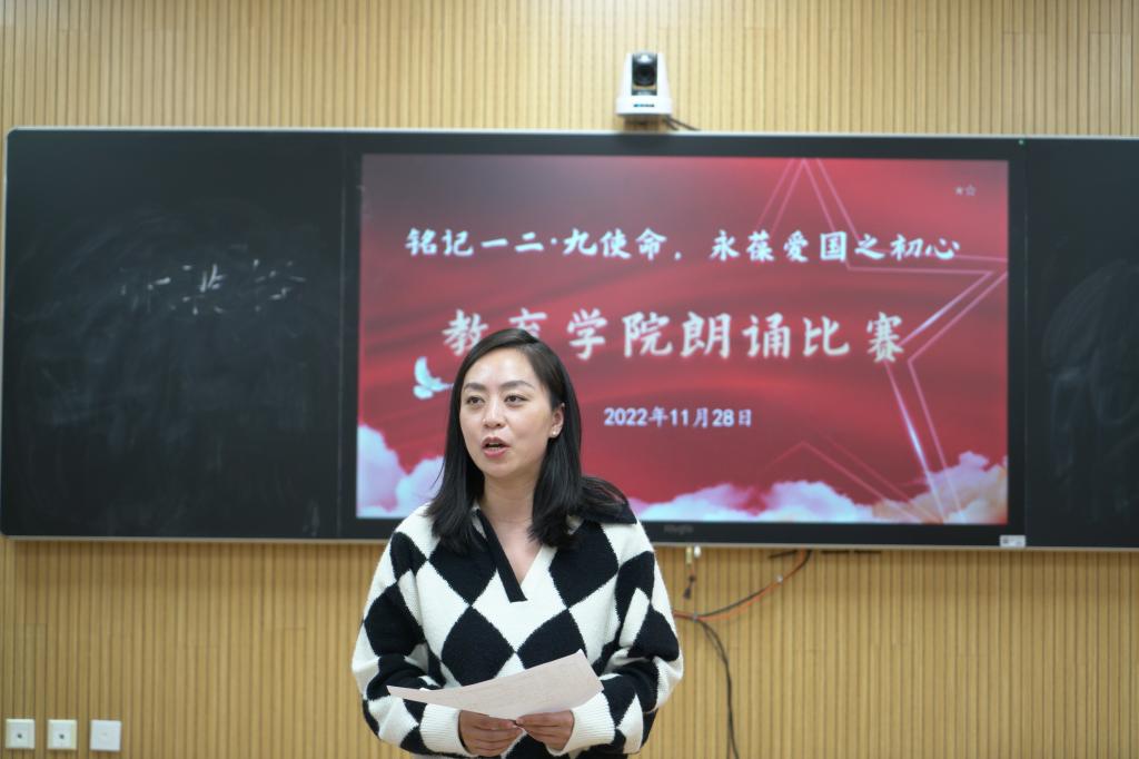 本次决赛共有十支队伍参赛,比赛开始前,晏枘泽简单介绍了比赛规则。比赛中,选手们紧扣主题,以饱满的热情、激昂的声音,声情并茂地朗诵了《青春中国》《为了永远的纪念》《旗帜》等经典作品。他们时而深情款款,时而慷慨激昂,以流畅而饱含感情的语言带来了一场精彩的视听盛宴,表达对革命先烈的缅怀,传递出对祖国最真挚的爱。
