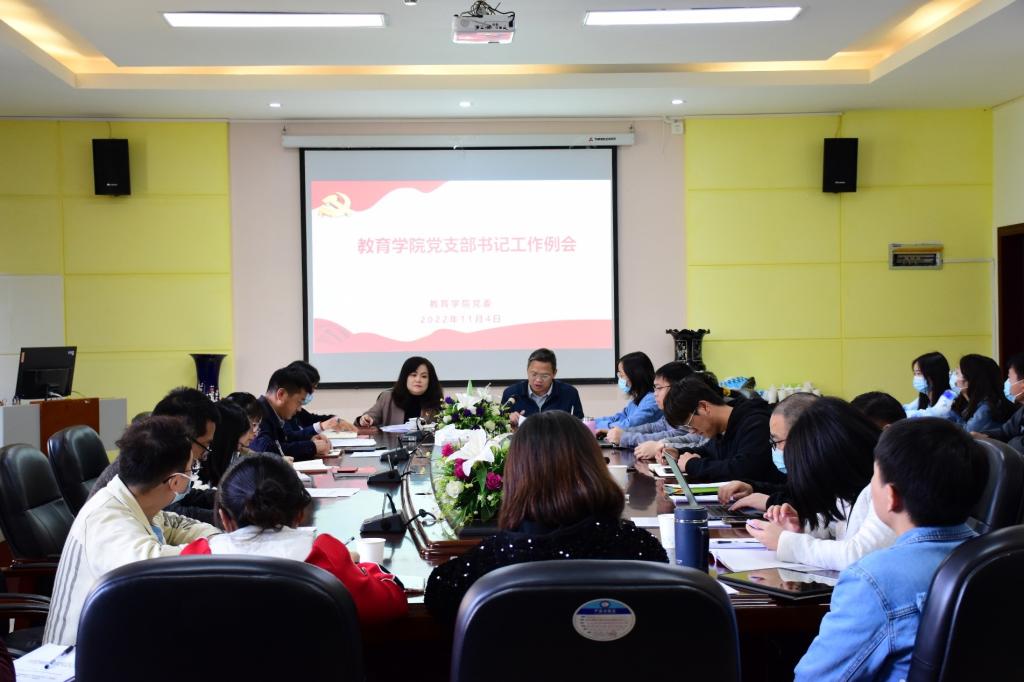 11月4日上午,k1体育于花溪校区公司楼三楼会议室召开党支部书记工作例会暨党务工作培训会。教育公司党委书记胡长华,党委组织员吴嘉佳,各师生党支部书记、委员参会。会议由吴嘉佳主持。