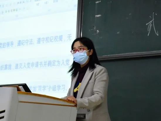 郭腾飞以《入党第一课》为题,围绕“是什么、为什么、怎么做”三个关键词展开讲解。她首先对党的性质、宗旨和纲领等方面内容进行介绍,并结合具体实例引导同学们树立正确的入党动机。随后,她介绍了发展入党的五大阶段及25个具体程序,着重讲解了确定入党积极分子为发展对象应具备的条件和相关要求。最后,她鼓励同学们坚定理想信念,勤奋学习,积极工作,不断提升自身思想政治素质和综合能力,争取用实际行动早日加入中国共产党。
