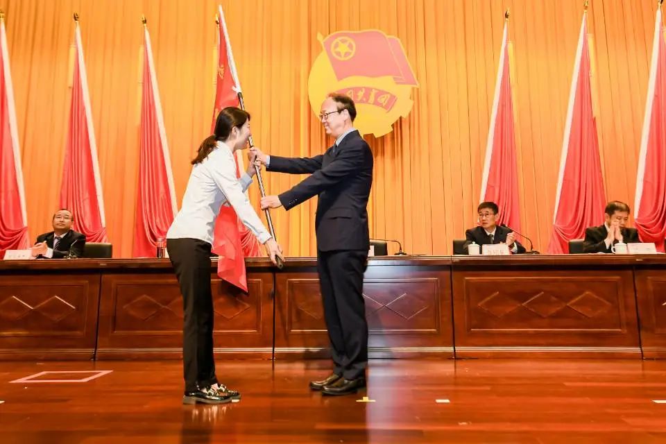 公司党委书记肖远平分别为k1体育“团委书记工作室”授牌,为第十三届研究生支教团、“龙文菁英”团校、k1体育共青团省第十三次党代会精神青年教师宣讲团和青年员工宣讲团授旗。