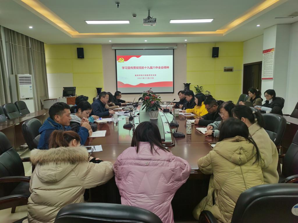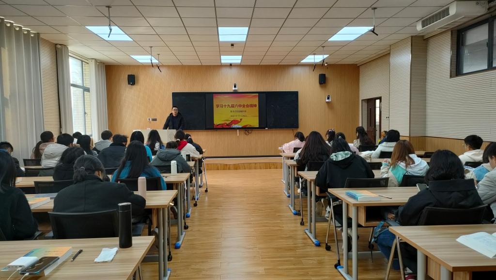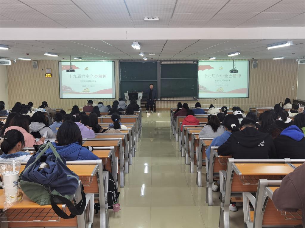 全院教职工大会及时学习了党的十九届六中全会公报精神。公司团务工作培训会组织开展党的十九届六中全会精神专题学习。各年级辅导员进班开展党的十九届六中全会宣传宣讲活动。
