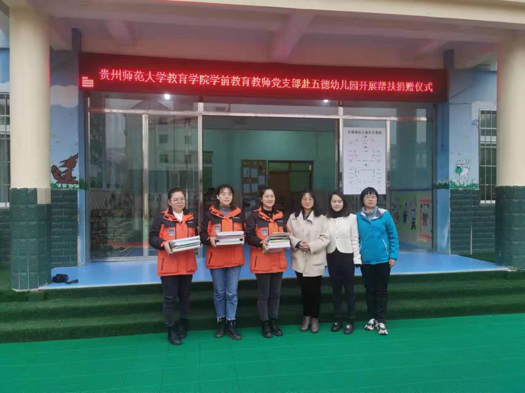 学前教育教师党支部师生党员帮扶五德镇中心幼儿园从主题墙创建及区角活动改造等方面对环境创设进行指导,针对园本课程建设、教学设计能力提升等方面开展了教学交流和指导,并捐赠儿童绘本等400余册图书资料。