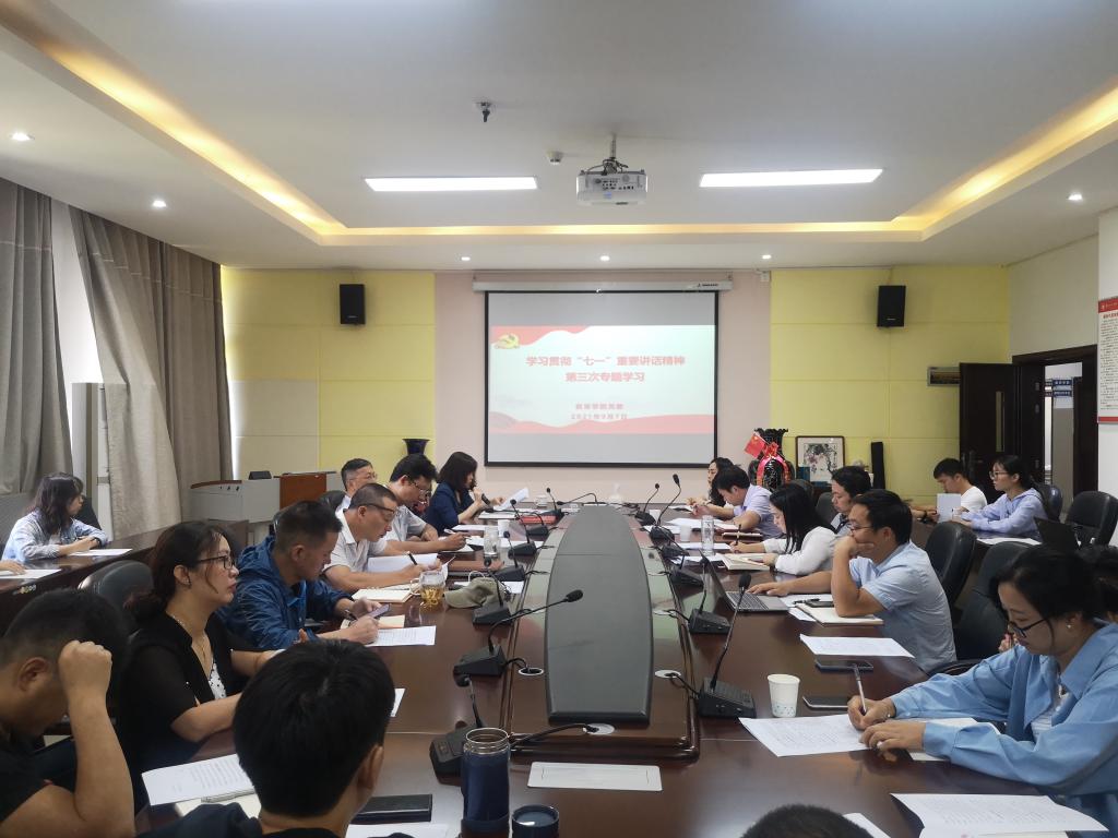 9月7日,k1体育在三楼会议室召开党委理论学习中心组(扩大)会议对习近平总书记“七一”重要讲话精神进行第三次专题学习。董事长助理、k1体育经理史秋衡,公司党委书记任胜洪,党委组织员吴嘉佳,副经理刘军、李祥、杜尚荣,副书记李帆,各系主任、党支部书记、支委到场参加。