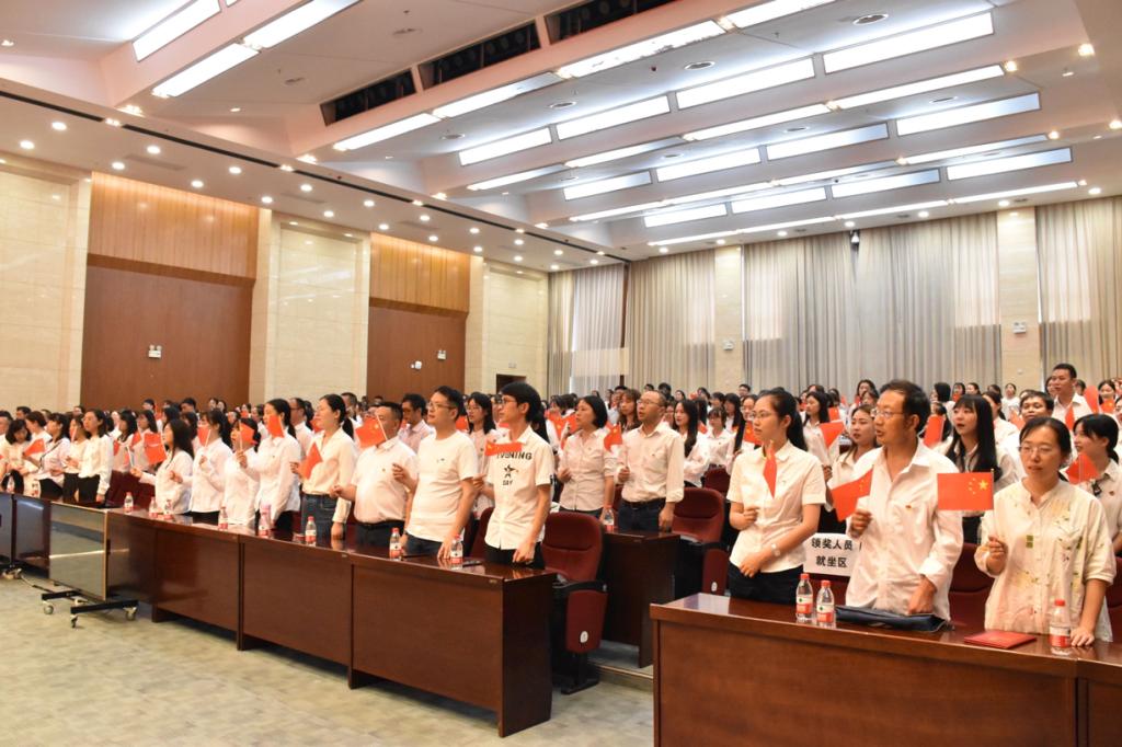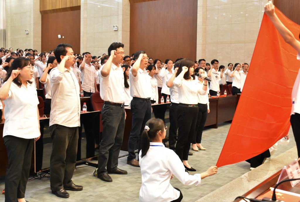 大会在庄严的国歌声中拉开序幕。吴嘉佳带领新党员进行入党宣誓暨老党员重温入党誓词。