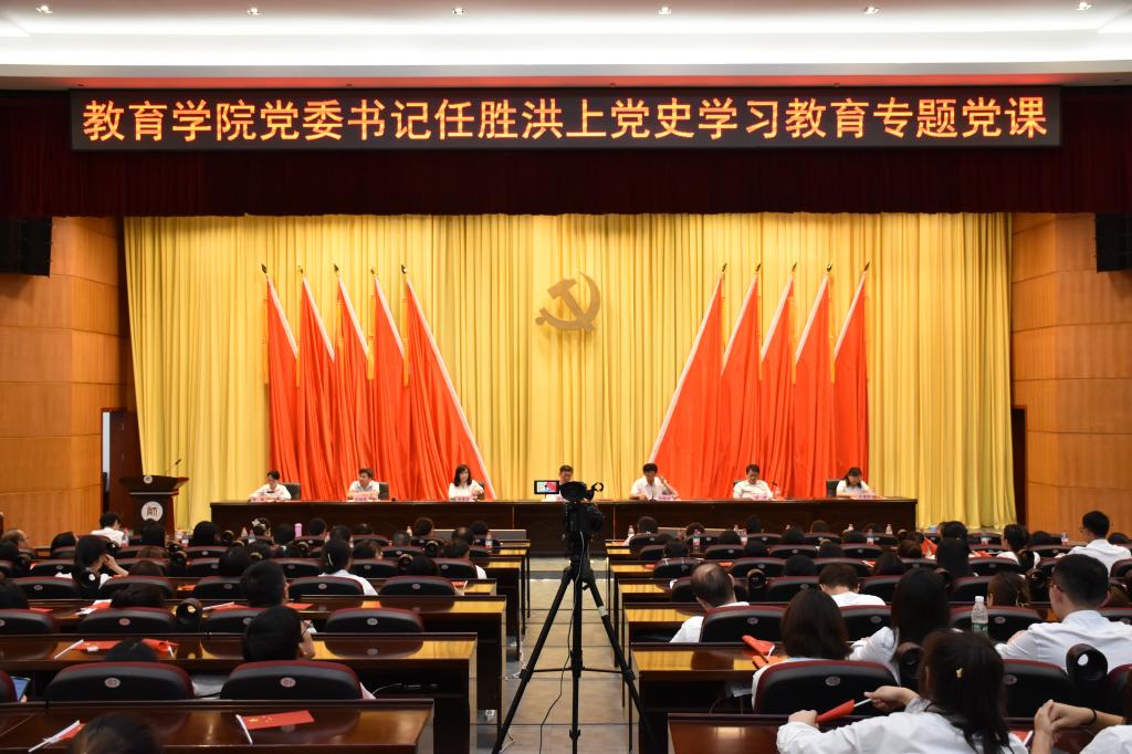 任胜洪结合自身党史学习的感受,以《为什么中国共产党具有强大的自我修复能力》为题为全院师生上专题党课。他分享了中国共产党建党以来的一些故事,阐述了中国共产党经历了从弱小到强大,从幼稚到成熟,探索出了革命和建设两条辉煌道路,党的面貌、国家的面貌、人民的面貌、军队的面貌、中华民族的面貌发生了前所未有的变化。他指出中国共产党之所以具有强大的自我修复能力是因为始终坚持马克思主义,始终坚持人民至上,始终坚持自我革命,他希望师生党员们在今后的发展道路上能克服困难,战胜挫折,不断前行。