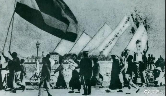 1919年5月4日,北京爆发员工反帝爱国运动。这是北京大学员工的示威游行队伍。