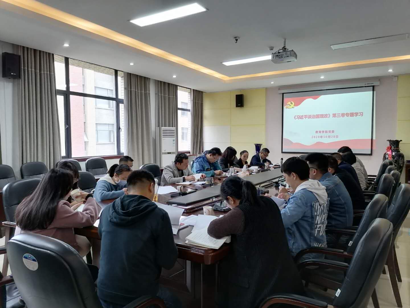 为深入学习宣传贯彻落实公司党委关于认真组织学习《习近平谈治国理政》第三卷的精神和要求,2020年10月13日至20日,教育公司党委结合工作实际,采取理论学习中心组、党支部组织生活、主题党日活动等方式,组织全体党支部和党员对《习近平谈治国理政》第三卷进行集中学习。