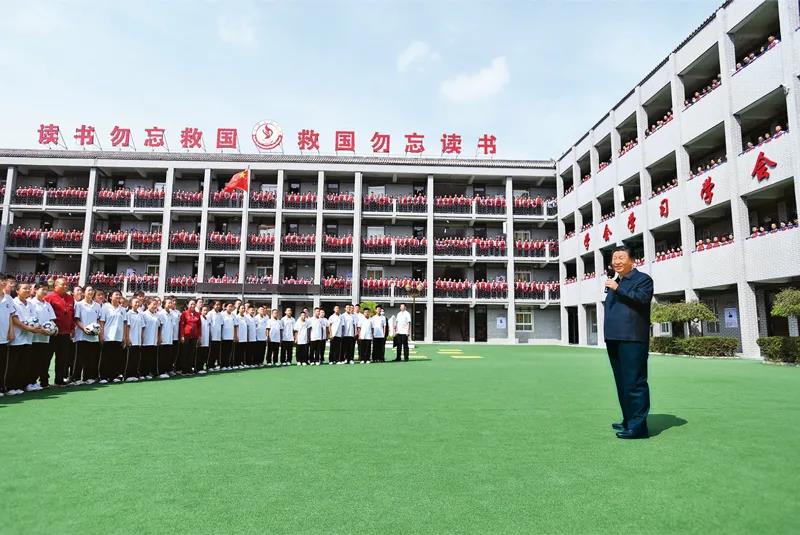 2021年9月13日至14日,中共中央总书记、国家主席、中央军委主席习近平在陕西省榆林市考察。这是14日上午,习近平在绥德实验中学考察时,同师生亲切交流。 新华社记者 谢环驰/摄