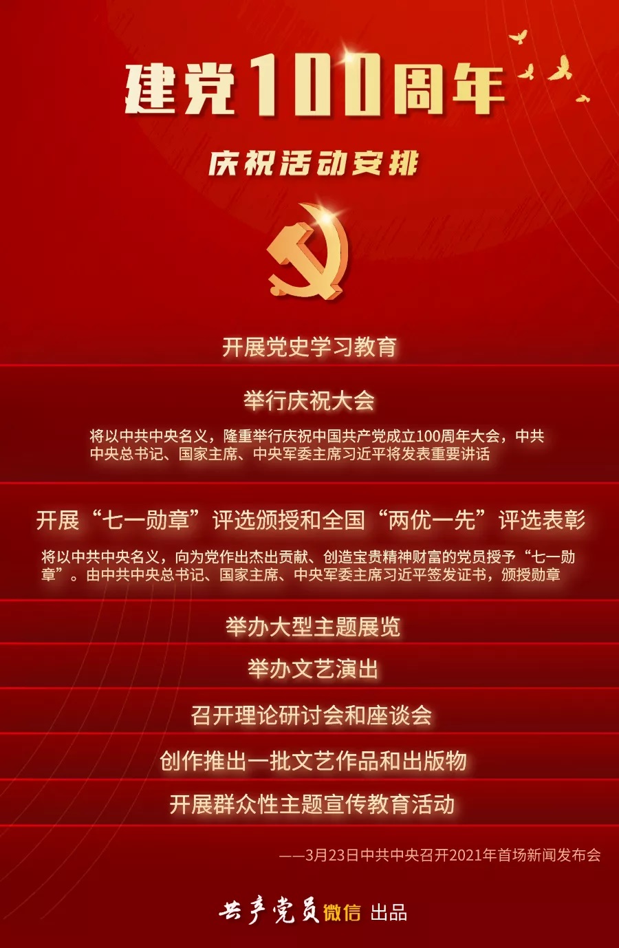 3月23日,中共中央召开2021年首场新闻发布会,中宣部副部长王晓晖介绍了中国共产党成立100周年庆祝活动的有关安排。