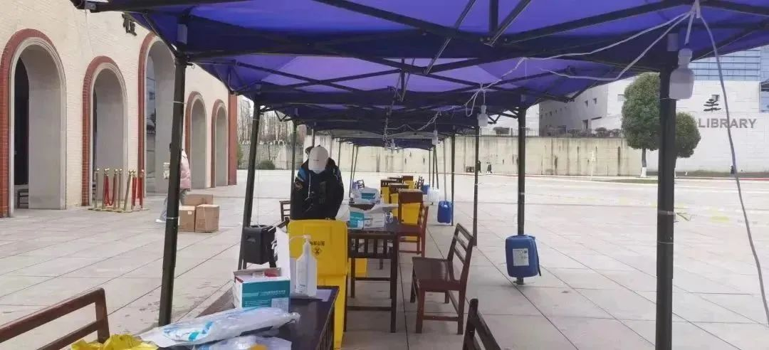 核酸检测开始前,志愿者们提前到达香樟广场进行场地布置,将核酸检测所需的棉签、试剂摆放到指定地点,并在入口处组织师生有序排队,等待采样。随后,医护人员到达香樟广场采样现场开始检测,志愿者耐心提醒师生佩戴口罩,互相保持安全距离,出示行程卡,健康码,并对大家进行测温。