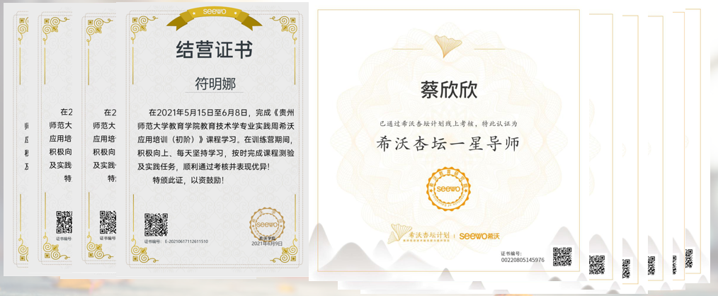 其中优秀摄影作品达155份;有43位同学在希沃公司获得结营证书,13名同学荣获希沃杏坛计划“一星导师”称号。