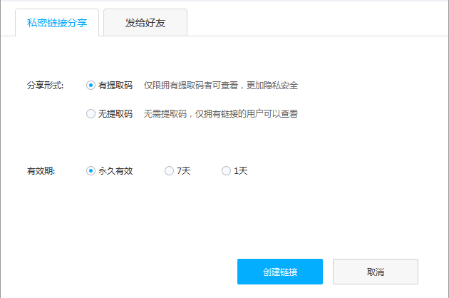 加密共享型:用户上传数据后,设置分享方式为“加密共享”,即将文件分享给他人时设置了“提取码”,对方在收到文件链接时需知道此提取码才可打开。