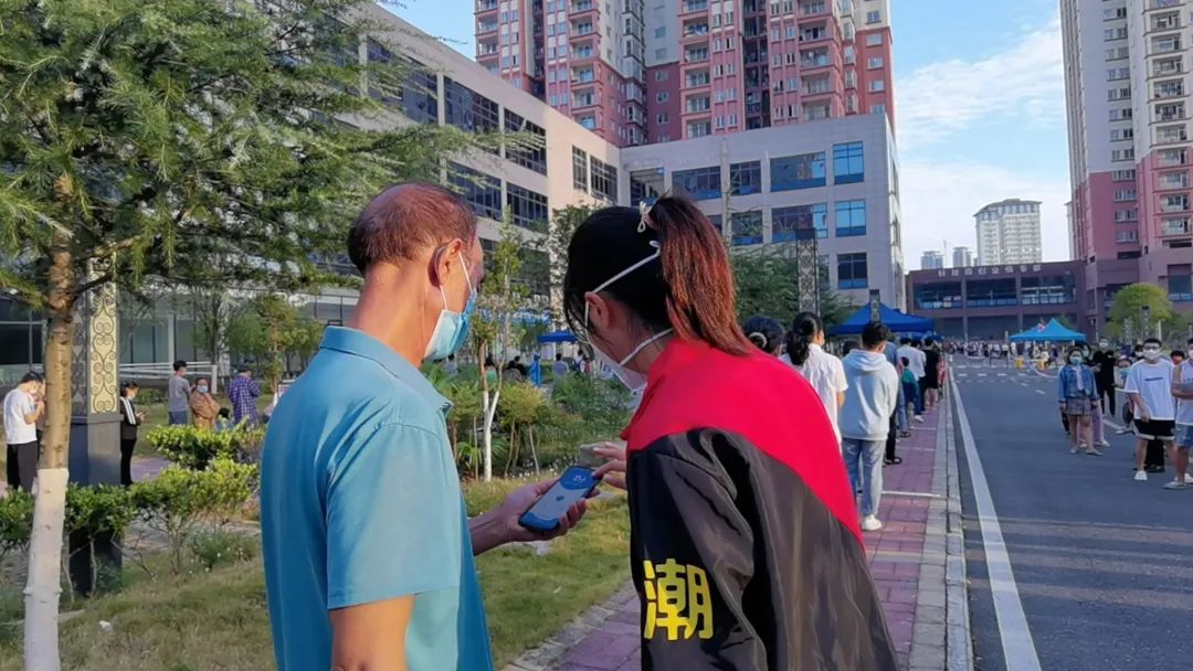 在全员核酸检测工作中,团学青的志愿者主动靠前服务,大大提高了核酸检测工作的效率。
