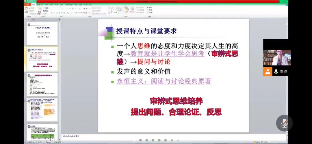9月7日是新生们开启线上课程的第一天,大家第一次接触到多种专业类课程,不免感到些许困难和不适应,但面对着“干货”满满的老师,同学们还是以饱满的热情积极投入到学习中,时而沉思、时而落笔、时而提问。偶尔会出现的网络卡顿问题,也及时通过微信群、QQ群与老师进行沟通,有效解决线上教与学的困难。屏幕这端,老师们认真授课、耐心答疑,屏幕那端,学子们孜孜以求、积极互动,“云”课堂秩序井然,精彩纷呈。