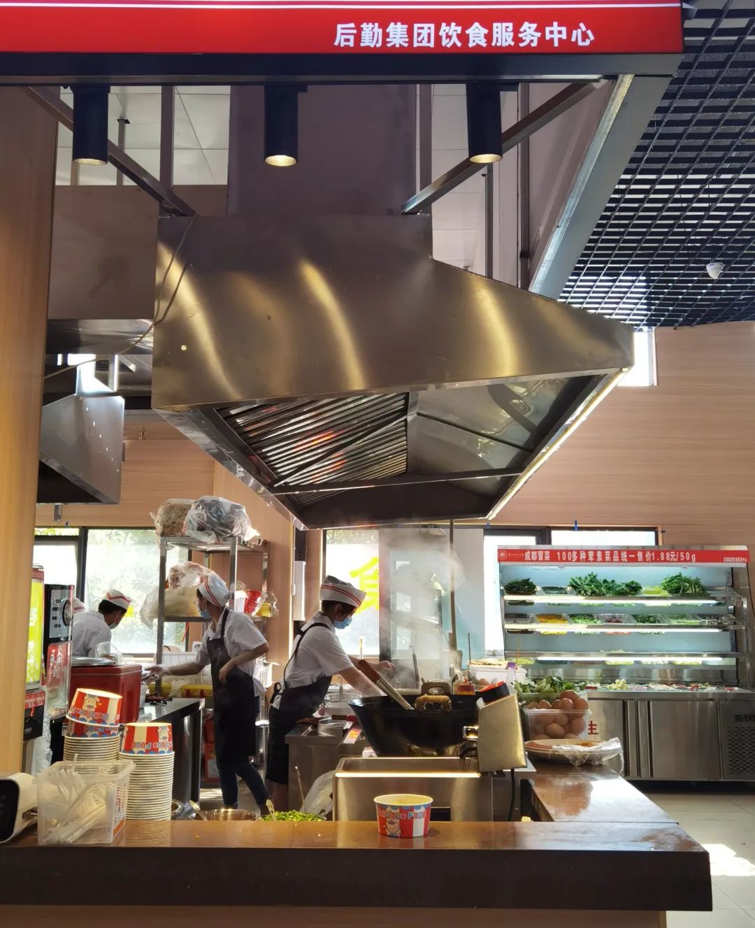 一楼提供各式早餐、粉面、米饭,旁边还有解馋的小食堂;二楼有自选称重的菜品;三楼右边为自选餐厅;四楼为教职工餐厅。