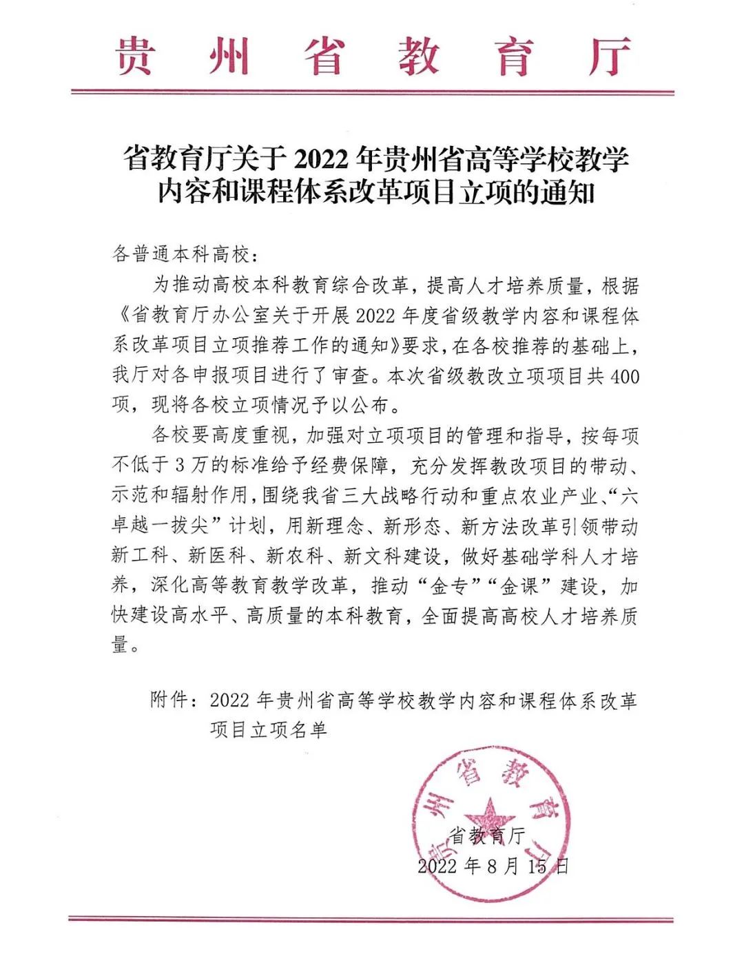 喜报|公司2022年贵州省高等公司教学内容和课程体系改革项目获批立项