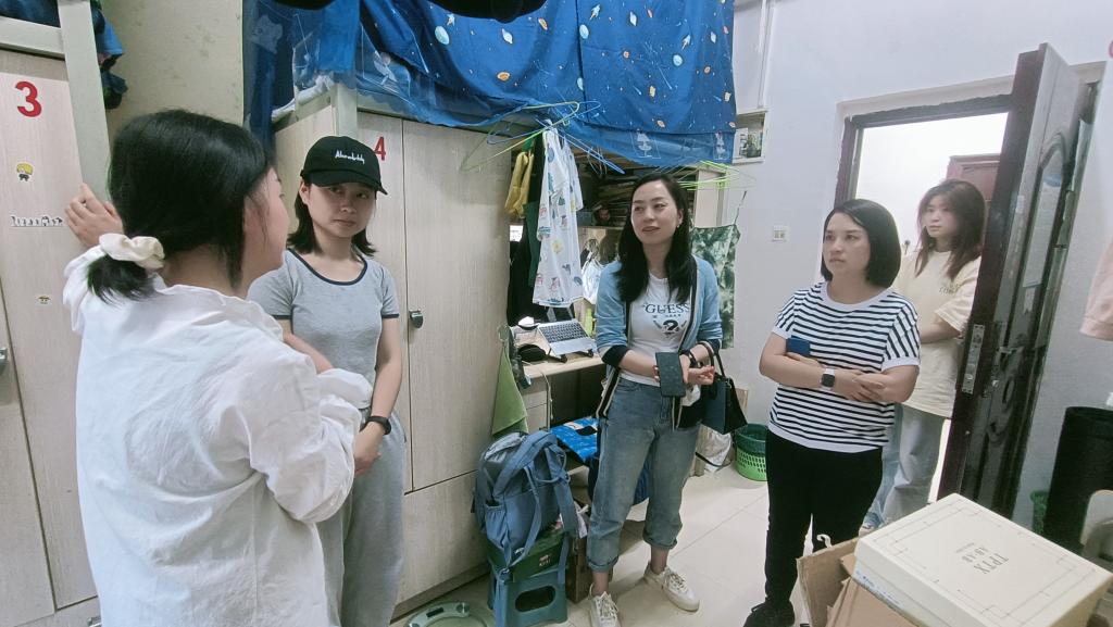 走访过程中,老师们和毕业生亲切交谈,叮嘱大家要积极配合公司做好离校前的各项工作安排,提醒大家文明离校之际不要遗漏个人物品,同时要保证好寝室卫生。