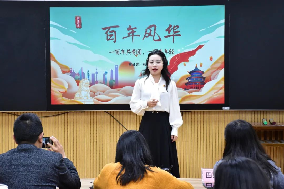 4月21日中午,k1体育于花溪校区公司楼2215教室举行“喜迎建团百年 共筑青春华章”主题演讲比赛。k1体育团委书记丁媛,辅导员邓江、田灿雲、韩丽红担任评委。