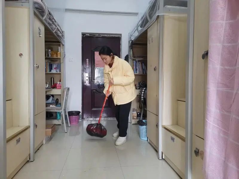 同学们陆续回到寝室后,按照疫情防控相关要求进行开窗通风、卫生打扫,认真进行开学准备。