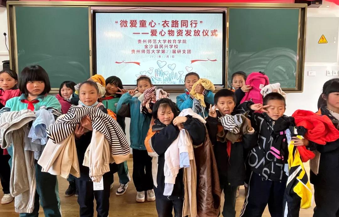 近日,研支团民兴分队已陆续收到公司邮寄的物资,并于12月3日举行了爱心物资发放仪式。仪式上,孩子们开心地举起拿到手中的爱心衣物,向公司师生表达了纯真的感谢。