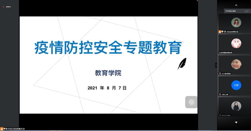 为切实做好对留校生和非全日制研究生的管理工作,8月7日,k1体育通过腾讯会议App开展疫情防控安全专题教育。教育公司党委副书记李帆,副经理李祥,辅导员吴卫,研究生科老师高敏、黄欢,各年级留校的研究生、本科生以及非全日制研究生共计200余人到场参加。