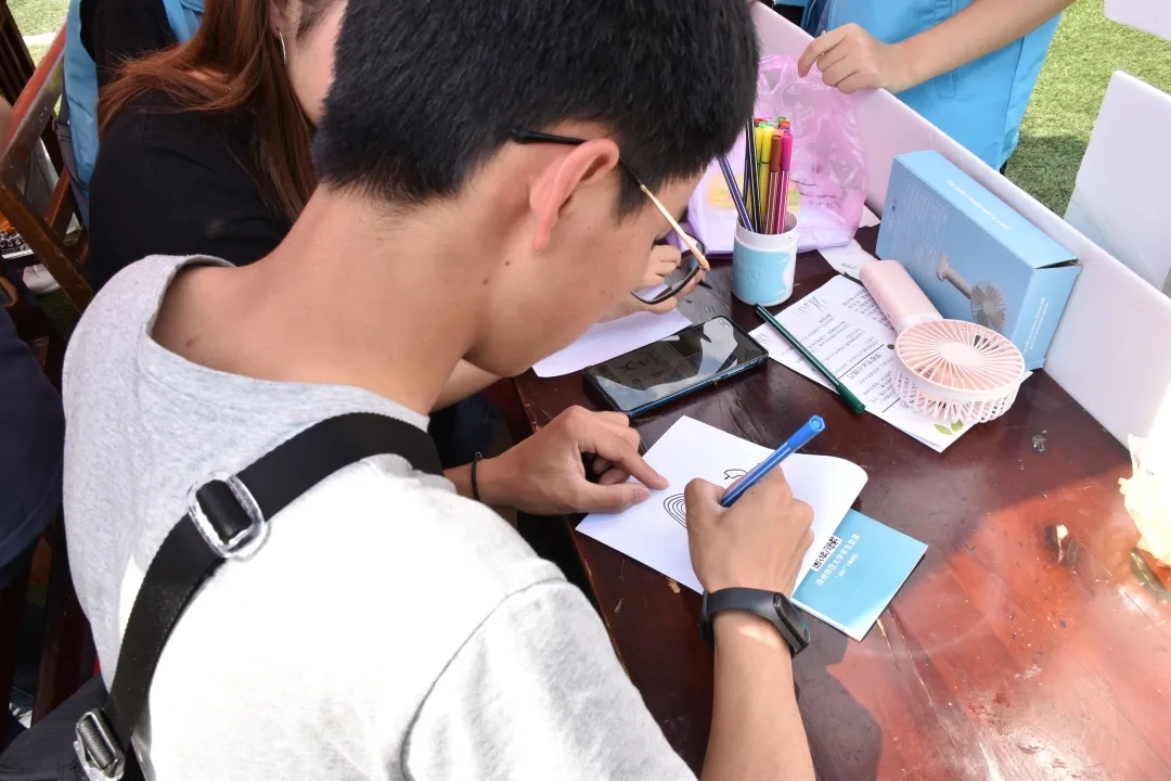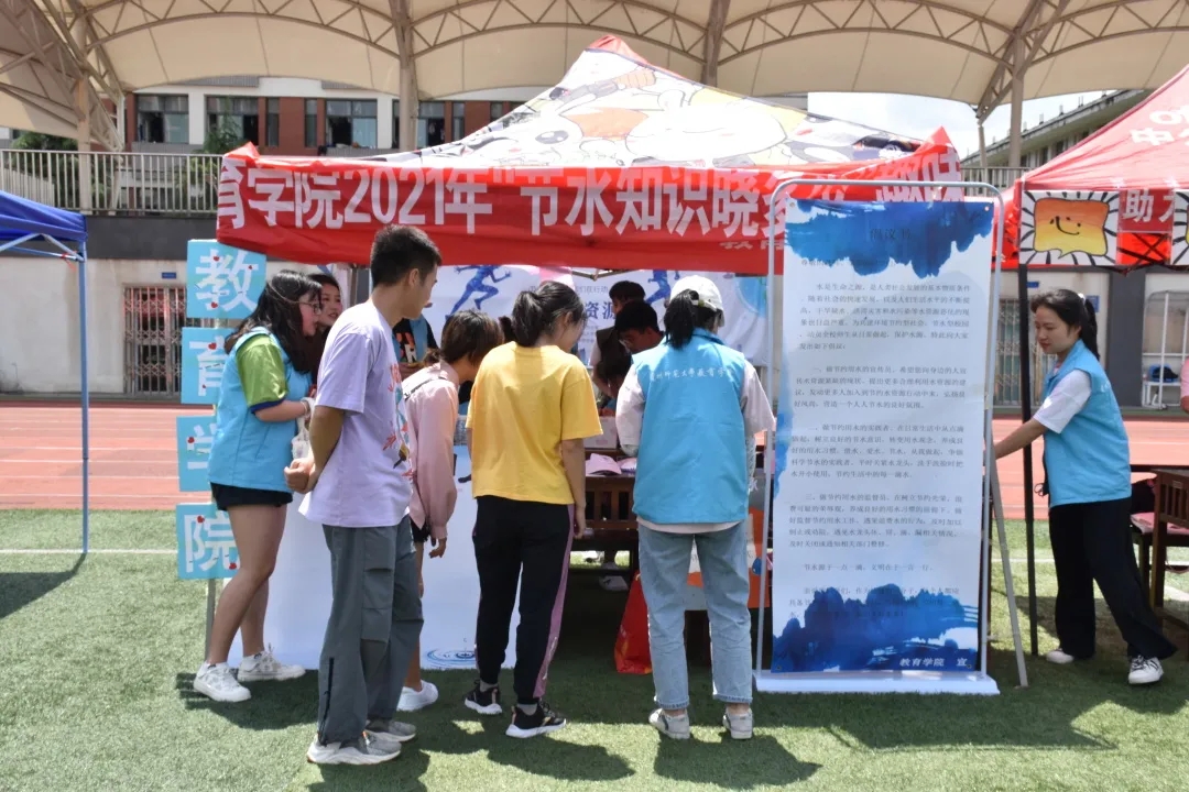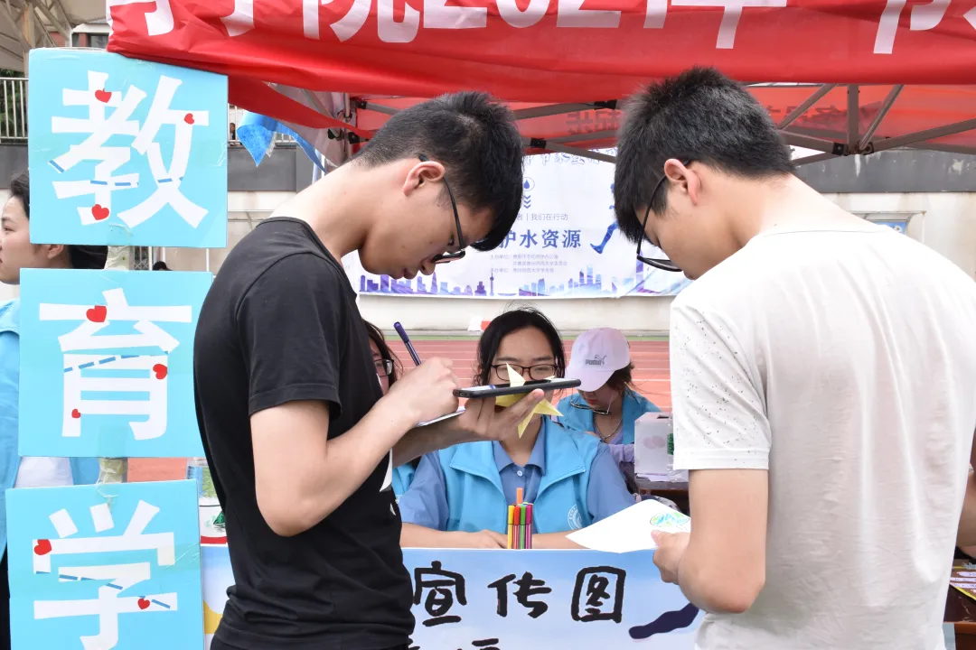 活动前期,青分会工作人员积极进行活动宣传,提前到场进行场地布置。本次活动主要分为两个部分,撰写和发放纸质版节约用水倡议书以及各种趣味知识宣传小游戏。