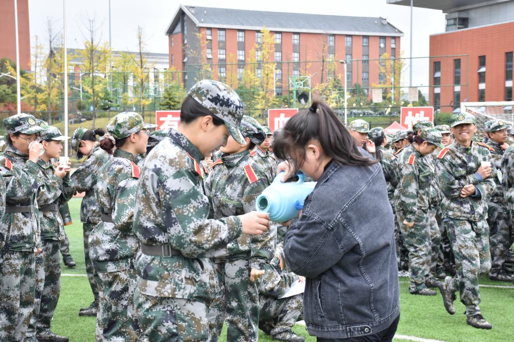 九点二十五分,休息时间即将结束,军训生们迅速将纸杯收拾在一起,学长学姐们告别各位小可爱并叮嘱他们要注意身体。