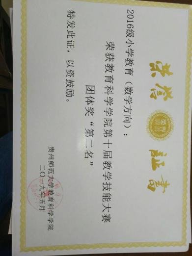 四年来小教班的同学们积极参与院校组织的各项活动,收获良多,成绩斐然。其中全班成绩通过率将近90%,教团队格证获得率为98.2%,四级通过率为48%,六级通过率为3%。斩获国家级荣誉70余项、省级荣誉20余项、校级荣誉80余项、院级荣誉40项。除此之外,同学们还积极参加各项志愿活动,服务时长长达700余小时。