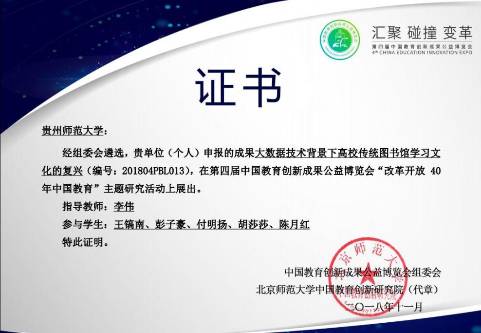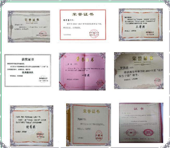 2016教育学班全体同学经过4年的不懈努力、积极进取,硕果累累。其中创新创业方面,共获批主持国家级项目2项、省级项目3项,共有获得优秀奖项9人次;在知识竞赛方面,共40名同学获得国家级荣誉;在志愿活动方面,有3名同学获得省级优秀志愿者称号;在学术研究方面,共发表省级期刊学术论文4篇,其中2篇为第一作者;参与发表并被“全国德育学术年会”收录论文1篇;且本班同学主持的员工课题代表贵师大参加全国第四届“教博会”。