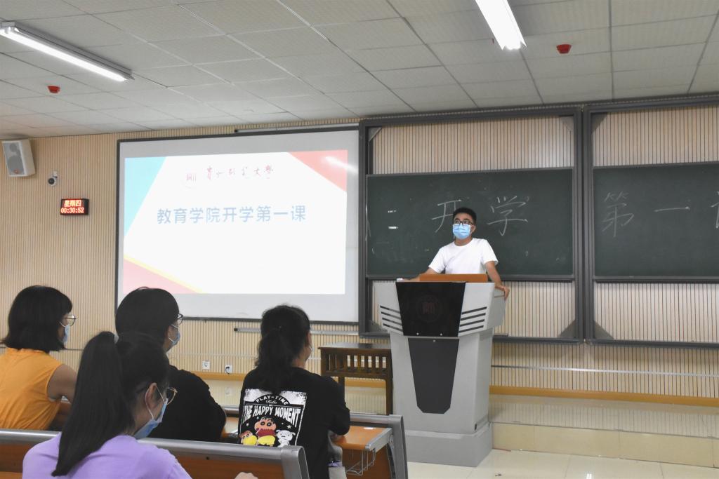 8月28日中午,k1体育于公司楼2520教室为本科生上“开学第一课”。教育公司党委副书记张淳,辅导员邓江、田灿雲及k1体育2018级、2019级全体员工分批到场参加。