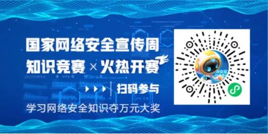 全民网络安全知识竞赛是面向广大网民的在线知识答题活动,通过排位赛、对抗赛等统计积分方式,将在网安周期间评选出10位全国网络安全达人并给予现金奖励。扫码即可参与,有没有一点动心?