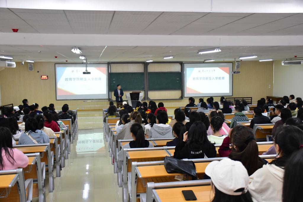 教育学系主任张翔、副系主任罗银新、专业教师余小茅;教育技术学系主任朱毅;学前教育系主任李旭、副系主任安红、专业教师杨润东;小学教育系主任漆涛分别为本专业新生进行了专业介绍,让新生了解了本专业的历史沿革和特色优势,并展示了近年来团队建设、教学、科研等方面取得的成果,鼓励同学们要扎实学习专业知识,结合专业的发展方向,尽早做好规划,为就业打下良好基础。