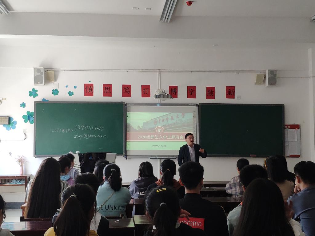 新生辅导员吴卫分别为四个班级开展了主题班会,他向新生详细介绍了校纪校规、军训期间的相关规定和要求、安全防范、班委会选举等一系列注意事项,希望大家能做到有问题及时和辅导员沟通,共同度过美好的老员工涯。