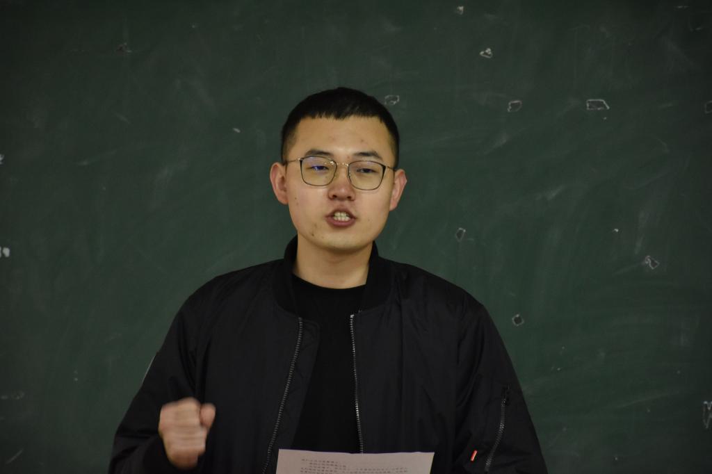 2019级研究生员工干部代表徐大伟在宣讲中鼓励学弟学妹们心有信仰,努力学习,夯实专长,将来能做到以小我之力,应大爱之召。