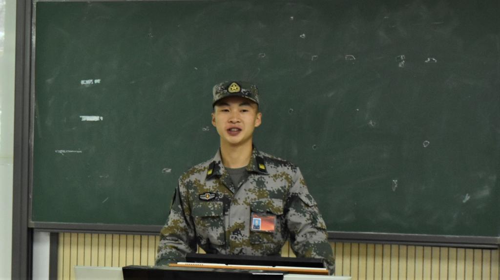 2018级教育技术学专业退伍生,现军鹰团成员聂昌勇生动地讲述了自身的入伍事迹,鼓励同学们踊跃参军,树立报国志向。