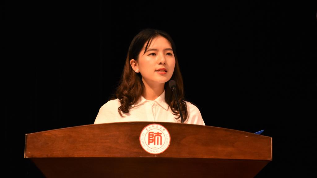 2020级教育学原理专业张静代表研究新生发言。她希望同学们能找准目标并制定相应计划,有意识的培养独立思考的能力、持之以恒的去实现自己的目标,徜徉于知识海洋中获得满足与乐趣。