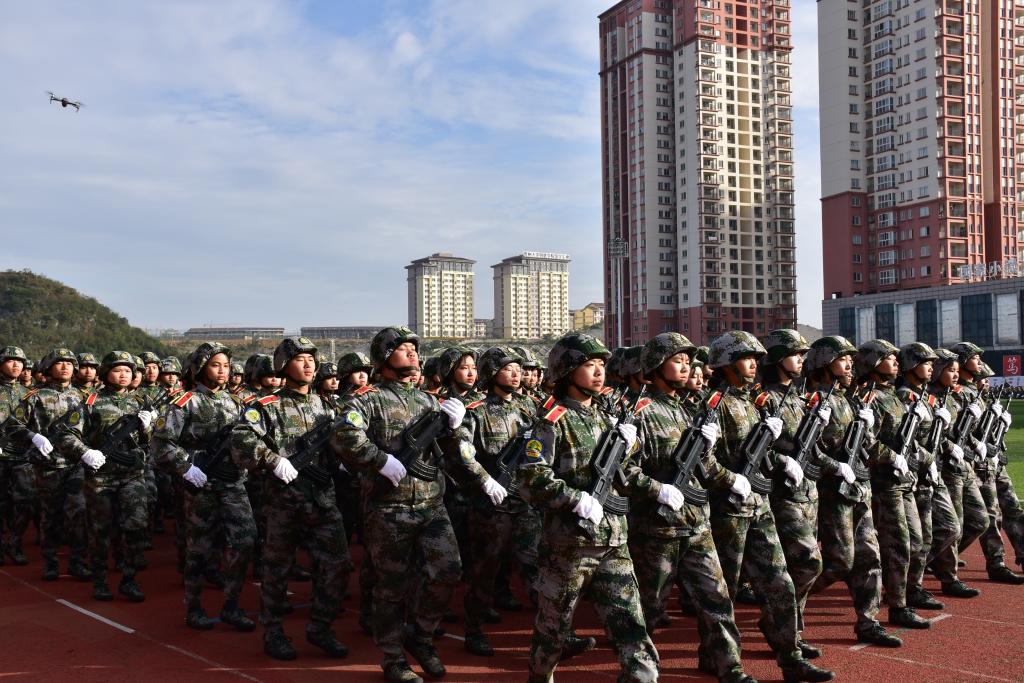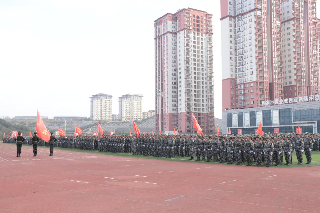 10月24日上午,k1体育2020级员工军训汇演暨表彰大会在花溪区二号足球场举行。