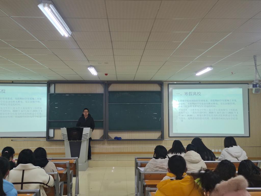为贯彻落实员工专项工作部署会相关工作要求,12月24日至30日,各年级辅导员组织各班开展了主题班会,向同学们传达了公司关于元旦假期、诚信考试、寒假安排和安全教育等内容,同时强调大家在寒假期间也要继续按照公司疫情防控相关要求,做好健康打卡等工作,严格执行属地政府的疫情防控要求,尽量避免前往中高风险地区,及时报告自身行程变动或身体异常。