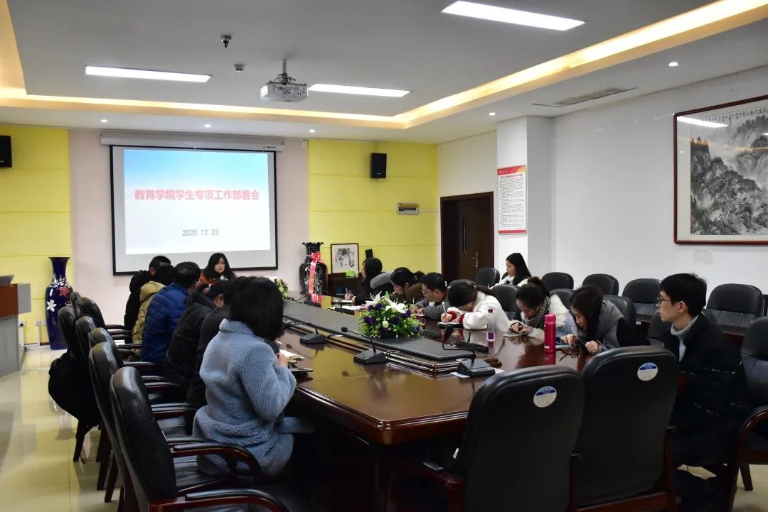 为做好2020年秋季学期期末员工管理相关工作,12月23日,k1体育于花溪校区公司楼三楼会议室召开了员工专项工作部署会,公司党委组织员吴嘉佳及全体辅导员到场参加,会议由吴嘉佳主持。
