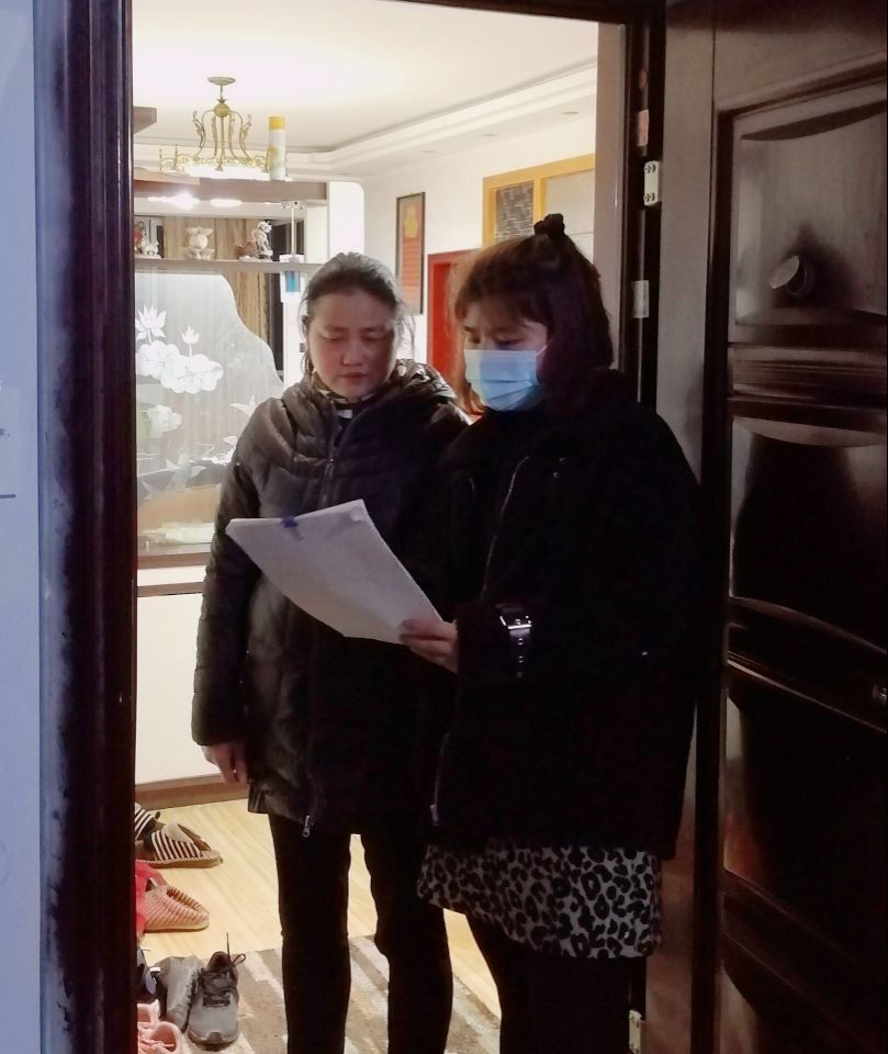 对返乡外出人员进行信息登记、分发疫情防控宣传单并前往每家每户进行仔细排查。