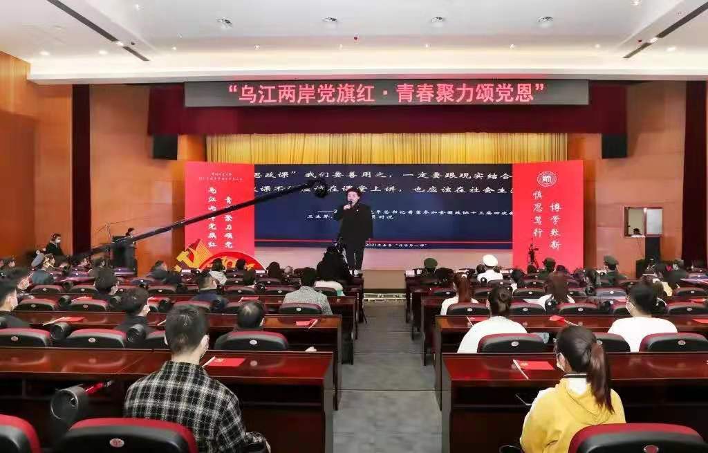 3月10日,在中国共产党百年华诞之际,公司在花溪、宝山、白云三校区同时举行2021年春季学期“开学第一课”——《乌江两岸党旗红 青春聚力颂党恩》,公司党委书记韩卉深情寄语,公司党委副书记、董事长肖远平作开课演说。教育公司党委高度重视,积极组织员工同步观看直播,课堂中感动与激动共存,引发公司学子热议。