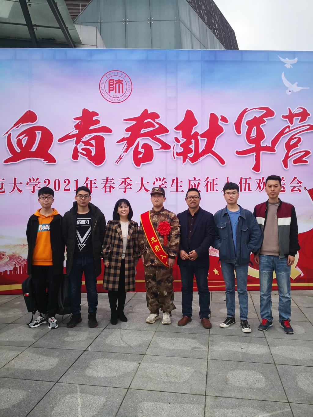 为进一步弘扬爱国主义正能量,3月15日上午,公司于花溪校区会议中心一楼学术报告厅举办2021年春季老员工应征入伍欢送会。k1体育2017级教育技术学班郑展业同学光荣入伍。