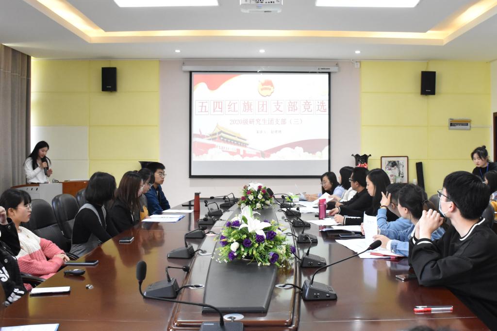3月29日中午,k1体育于公司楼三楼会议室开展2020年度“五四红旗团支部”评比活动。公司党委副书记李帆,团委书记丁媛,辅导员邓江、田灿雲、吴卫,研究生科黄欢担任评委,本科生、研究生各班团员青年代表共50余人到场参加。活动由团委组织部副部长张梦琪主持。