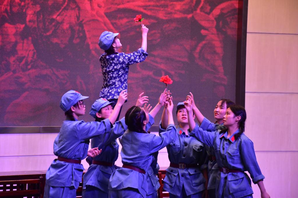 表演正式开始,各团支部结合专业特点,以舞蹈、朗诵、情景剧、微视频等形式,生动再现了共产党人艰苦奋斗的历程,诠释了中国共产党的初心使命。参演人员全情投入、声情并茂,不少情景让在场观众感同身受、潸然泪下。