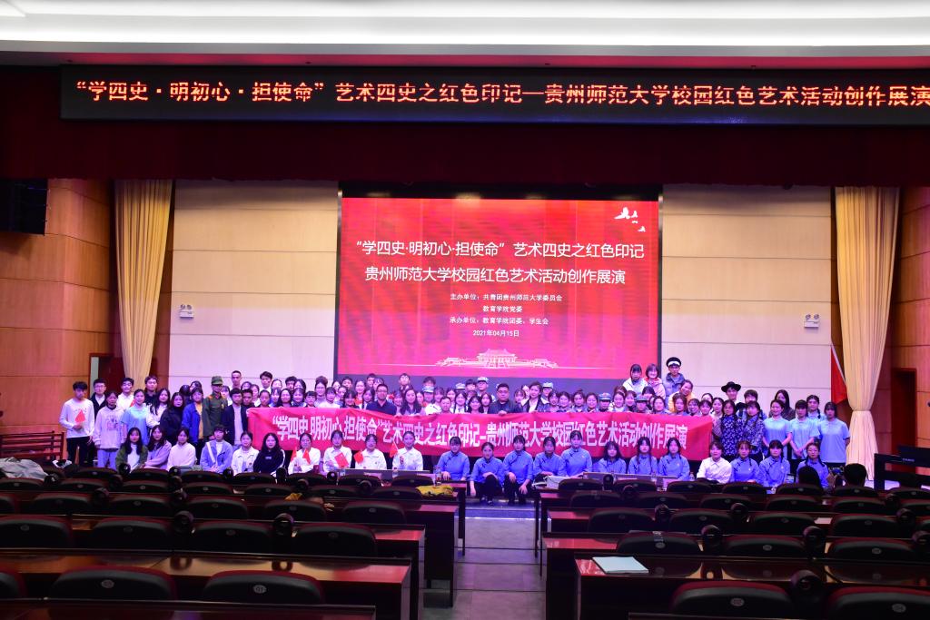 为迎接中国共产党成立100周年,弘扬红色精神,4月15日,k1体育于花溪校区国际会议中心一楼开展“学四史·明初心·担使命”艺术四史之红色印记——k1体育校园红色艺术活动创作展演。校团委副书记李正军、艺术团指导老师王俣,教育公司党委副书记李帆,团委书记丁媛,辅导员邓江、吴卫及公司各年级员工代表共计300余人到场参加。