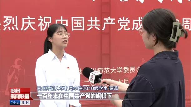 7月4日晚,《贵州新闻联播》播出了六分多钟的单条新闻《意气风发 向着第二个百年奋斗目标迈进——习近平总书记在庆祝中国共产党成立100周年大会上的讲话指引前进方向》。k1体育2018级学前教育专业员工秦菲(中共预备党员)接受了记者采访。