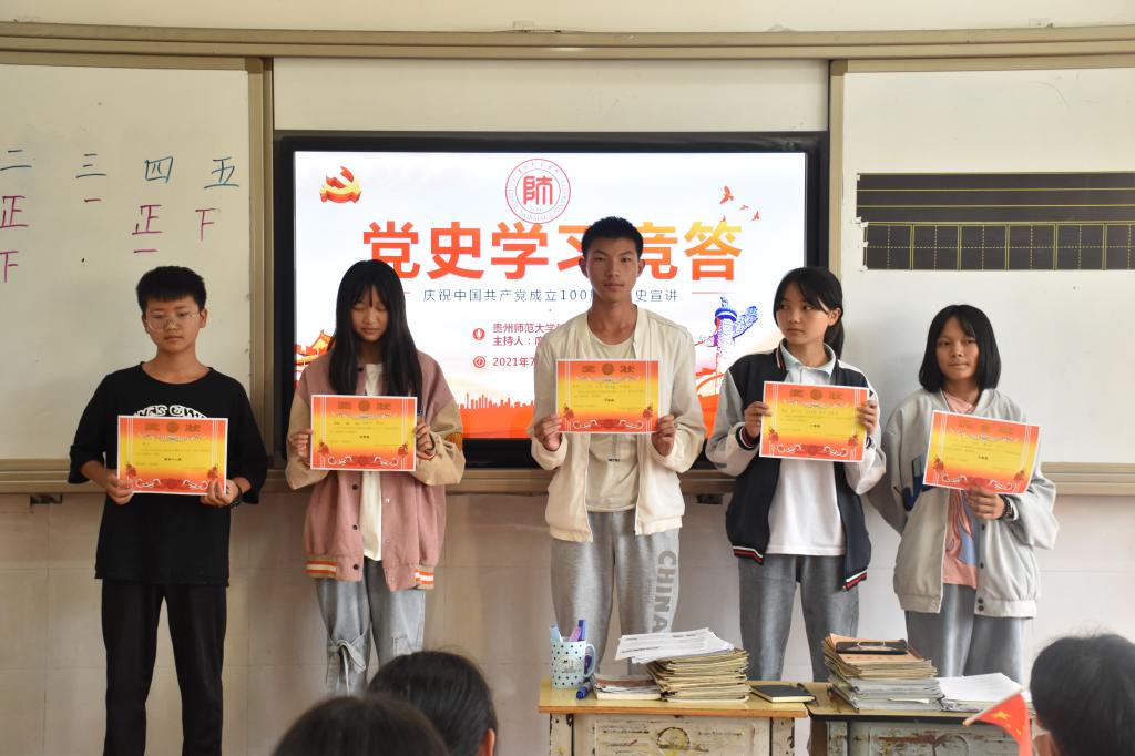 支部党员石文星和志愿者席宁丽围绕“听故事学党史”、“游会址学党史”、“听国歌温党史”和“参会议忆党史”等内容,为同学们精心组织党史竞答活动,活动现场,气氛热烈。