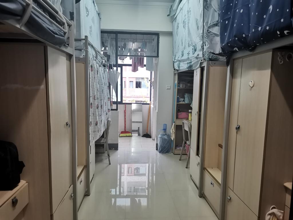 再看看宿舍内部构造,顶级安保,彻夜长廊,豪华四人间,大窗美景,配置齐全。每一处安装都经得起体重的考验,每一层书架都渴望知识的重量。