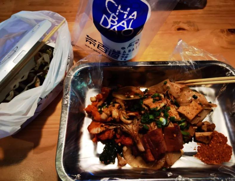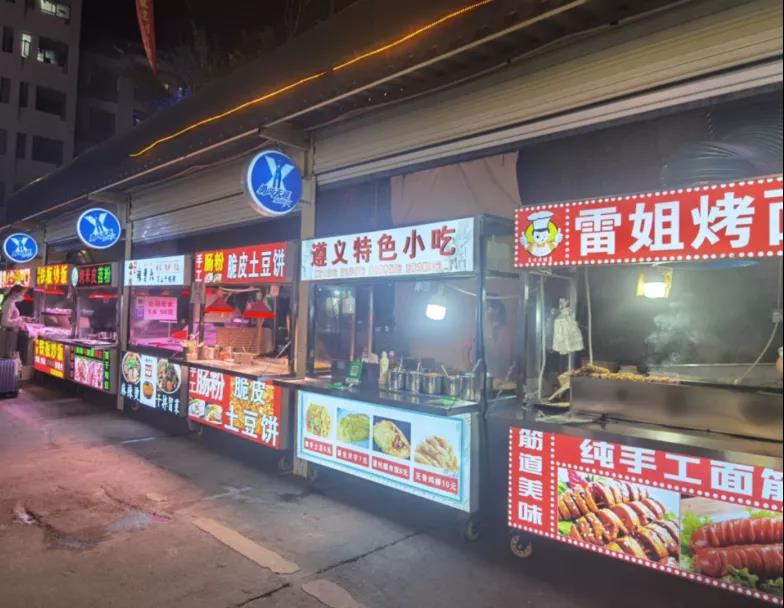 一楼提供早餐和饭菜,同时设有超市,供应贵州特色产品以及各种水果等食物;二楼供应粉面,家常小炒菜、火锅餐厅,最最最最让人心动的是可全天就餐。